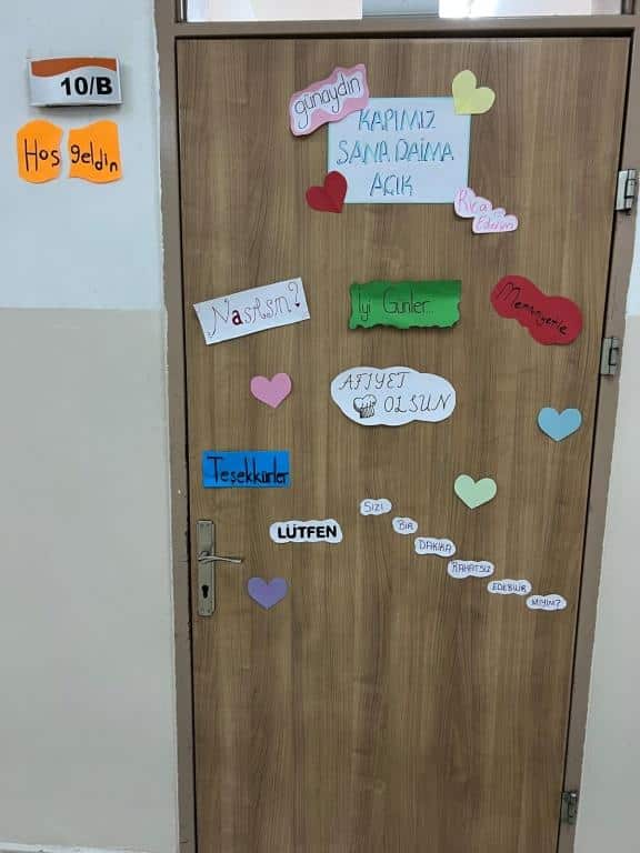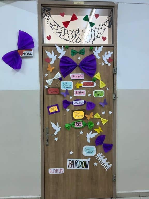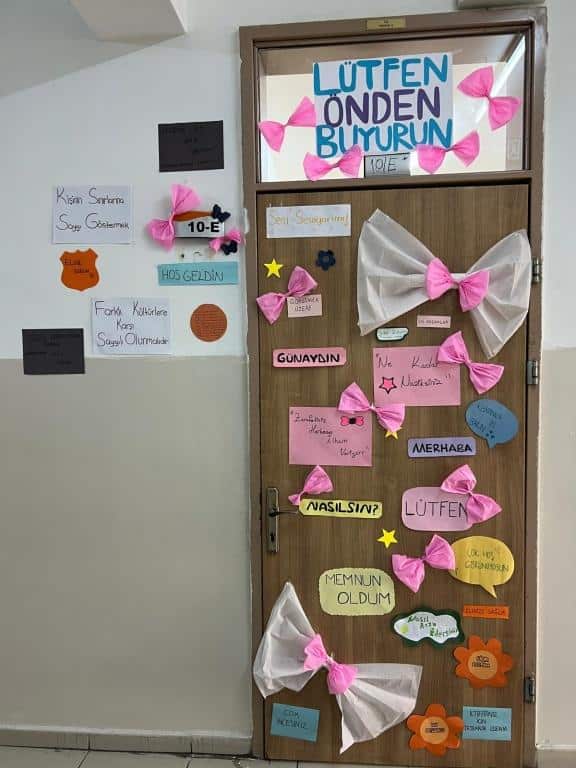 Öğrendiklerimizi pekiştirmek ve günlük hayatta kullanmaya teşvik etmek amacıyla sınıf kapılarımızı nezaket ifadeleriyle süsleyerek anlamlı bir çalışma gerçekleştirdik.